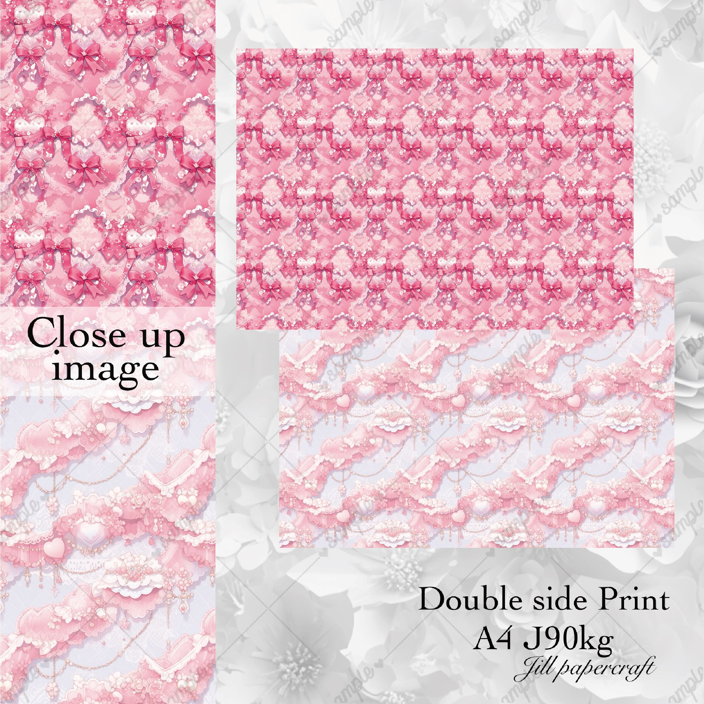 【通常販売】100枚★復刻ピンクリボン★A4両面デザインペーパー4種(8Design)